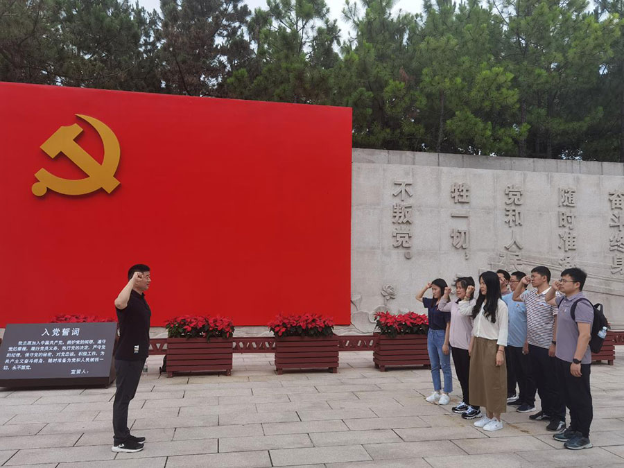 首先,大家來到南湖革命紀(jì)念館前,公司黨支部書記路世強(qiáng)組織全體黨員同志重溫了入黨誓詞。鏗鏘恢宏的誓詞,強(qiáng)烈震撼著在場的每一位黨員,一字一句,神圣而豪邁,錚錚誓言,體現(xiàn)了黨員同志們對中國共產(chǎn)黨的無限忠誠,堅(jiān)定了入黨使命,奮斗初心。