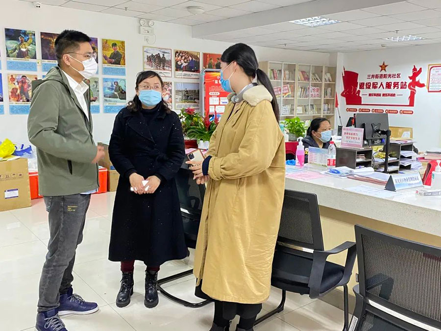 瑞新黨支部慰問組來到三井街道陽光社區后,贈送了生活物資,并和社區工作人員進行了深入的交流,對這些一線工作者所展現的勇于擔當、敢于奉獻的高尚品德表示了敬意和問候!三井街道陽光社區黨支部書記潘雙表示:“這一輪疫情以來,我們社區職工聞令而動,不辭辛苦,配合醫務人員為每一位患者提供服務,他們也以自己職業的素養,守護著這座城市的健康安全,所以我想代表社區職工感謝瑞新黨支部,你們為我們送來的這一份守護和關愛,不僅是一份健康的守護,更是一份直達人心的溫暖。”