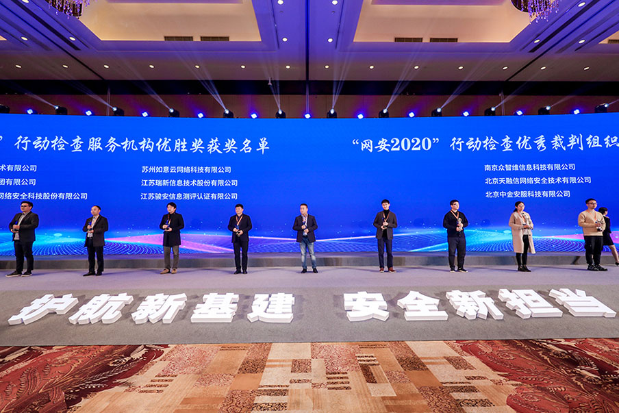 江蘇瑞新作為江蘇省15 家重點網絡安全企業之一,受邀參加網絡安全成果展。在大會主論壇上榮獲“網安2020”行動檢查服務機構優勝獎,并且我司的“網絡安全監管平臺”被評選為2020江蘇省網絡安全七大優秀案例之一。