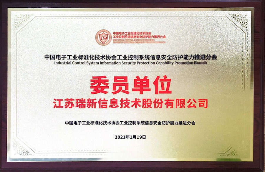 近日,我司獲評中國電子工業標準化技術協會工業控制系統信息安全防護能力推進分會委員單位。
