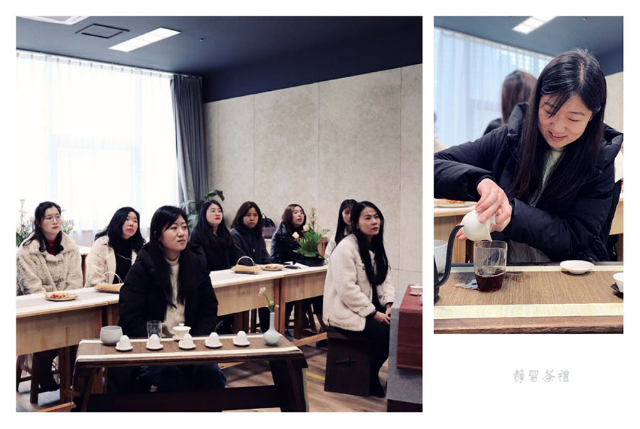 在靜習(xí)茶禮課堂,老師向大家講授了茶的分類知識,普及了茶具、茶禮和選茶、泡茶等傳統(tǒng)文化,并帶領(lǐng)大家體驗了一整套茶藝流程。