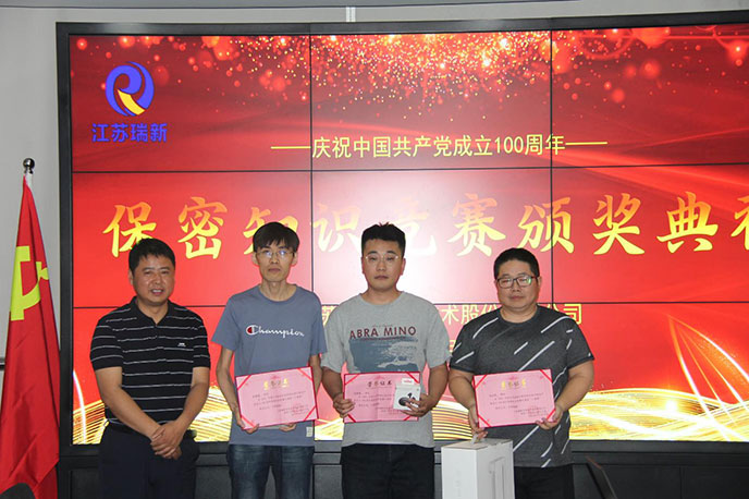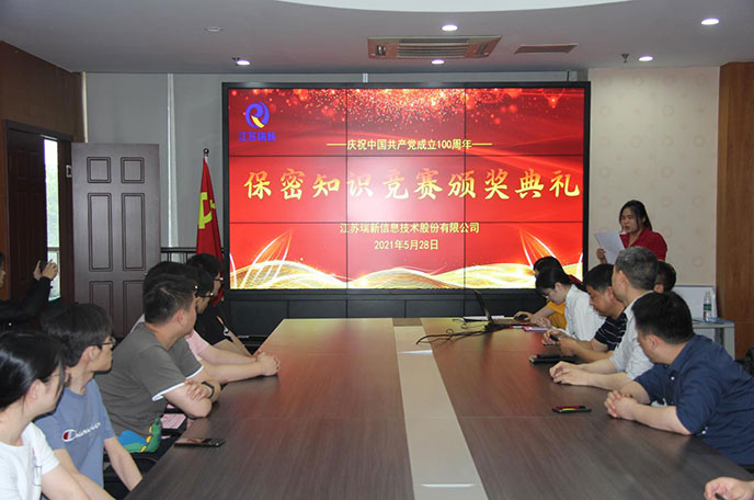 5月28日下午,江蘇瑞新信息技術股份有限公司保密工作領導小組辦公室組織保密知識競賽比賽頒獎典禮。