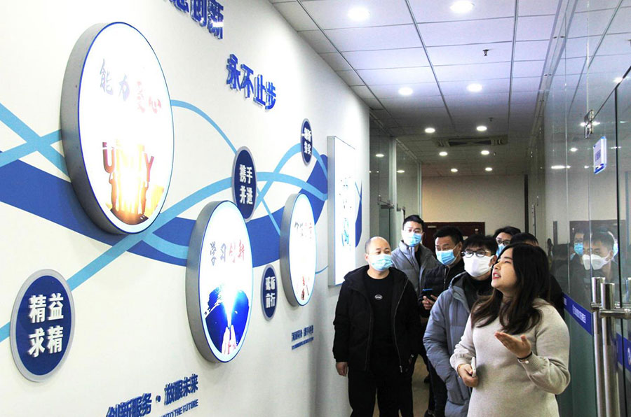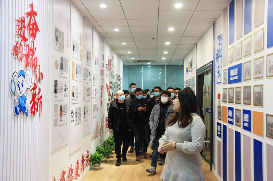 學員們到達公司后,在引導員的帶領講解下,相繼參觀了企業榮譽墻、黨史墻、企業文化墻、網絡安全“紅色衛士”宣傳隊工作站等,了解黨的光輝歷程、企業黨建工作和感受了企業濃厚的企業文化。