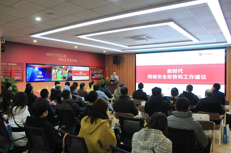 為了更好的了解認清當前網絡安全形勢,2021年12月2日上午,“大數據時代下網絡安全”高級研修班學員赴江蘇瑞新信息技術股份有限公司參觀學習。