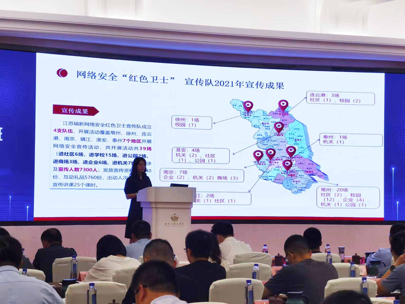 ?2022年7月12日-15日,江蘇省市、縣(市、區)網信辦負責人網絡安全高級研修班”在江蘇南京舉辦。江蘇瑞新信息技術股份有限公司參加并向江蘇省市、縣(市、區)網信辦負責人匯報公司黨建品牌網絡安全“紅色衛士”主要做法,此次共100余人參加本次高級研修班。