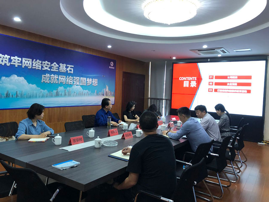 5月13日,江蘇省互聯網協會秘書長劉湘生和常州市委網信辦副主任、常州市互聯網行業黨委副書記陸煒,常州市互聯網行業協會周向華秘書長蒞臨江蘇瑞新指導工作。會上江蘇瑞新支部書記、總經理路世強就公司概況、黨建及打造省級網絡安全人才素養基地工作做了詳細的匯報。就致力于打造互聯網行業黨建品牌的愿景與各位領導做出詳細匯報。