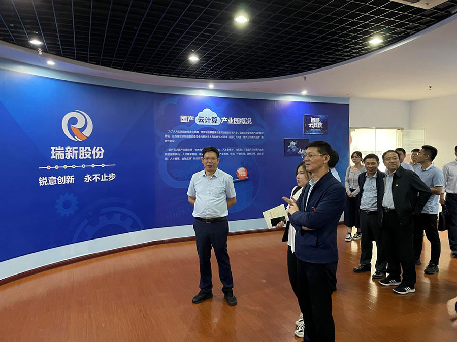 接著領導一行分別參觀了瑞新信息安全實訓室和信創技術應用成果展,領導們認真的聽取工作人員就國產化硬件平臺及軟件適配環境的介紹,仔細觀看了公司自主研發的國產化統一信任管理平臺,政務內網綜合應用系統,電子文件管理等系統的演示。