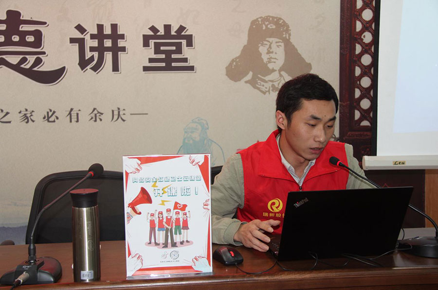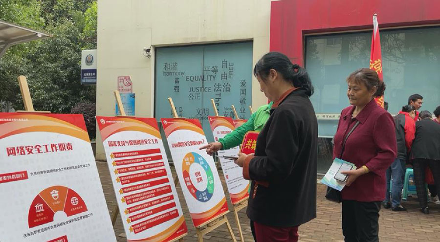 宣講完后,江蘇瑞新紅色衛士隊在居民區附近,設置網絡安全紅色衛視服務平臺和宣傳平臺,組織居民參觀宣傳展板,發放網絡安全知識的宣傳手冊,組織居民參與競答關于“網絡安全的知識問答卷并發放網絡安全小禮品,現場為居民解決了一些網絡安全問題。
