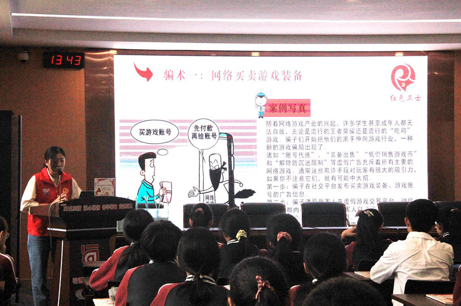 青少年作為網民的重要組成部分,是網絡安全的直接受益者,也是維護網絡安全的重要力量。培養青少年的網絡安全意識,提升網絡安全防范能力,既是學校的責任,也是網絡安全紅色衛士宣傳隊的一項重要宣傳內容。