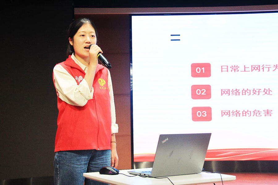 此次活動紅色衛士隊隊員結合真實案例、緊扣現實生活,就如何保護個人隱私、沉迷網絡、慎點未知彈窗鏈接、謹慎網絡交友遠離不良信息、識破網絡詐騙等方面進行了深入的宣講,講解時以流行的網絡用語為切入點,寓教于樂,用妙趣橫生的開場白引起了學生們的共鳴。