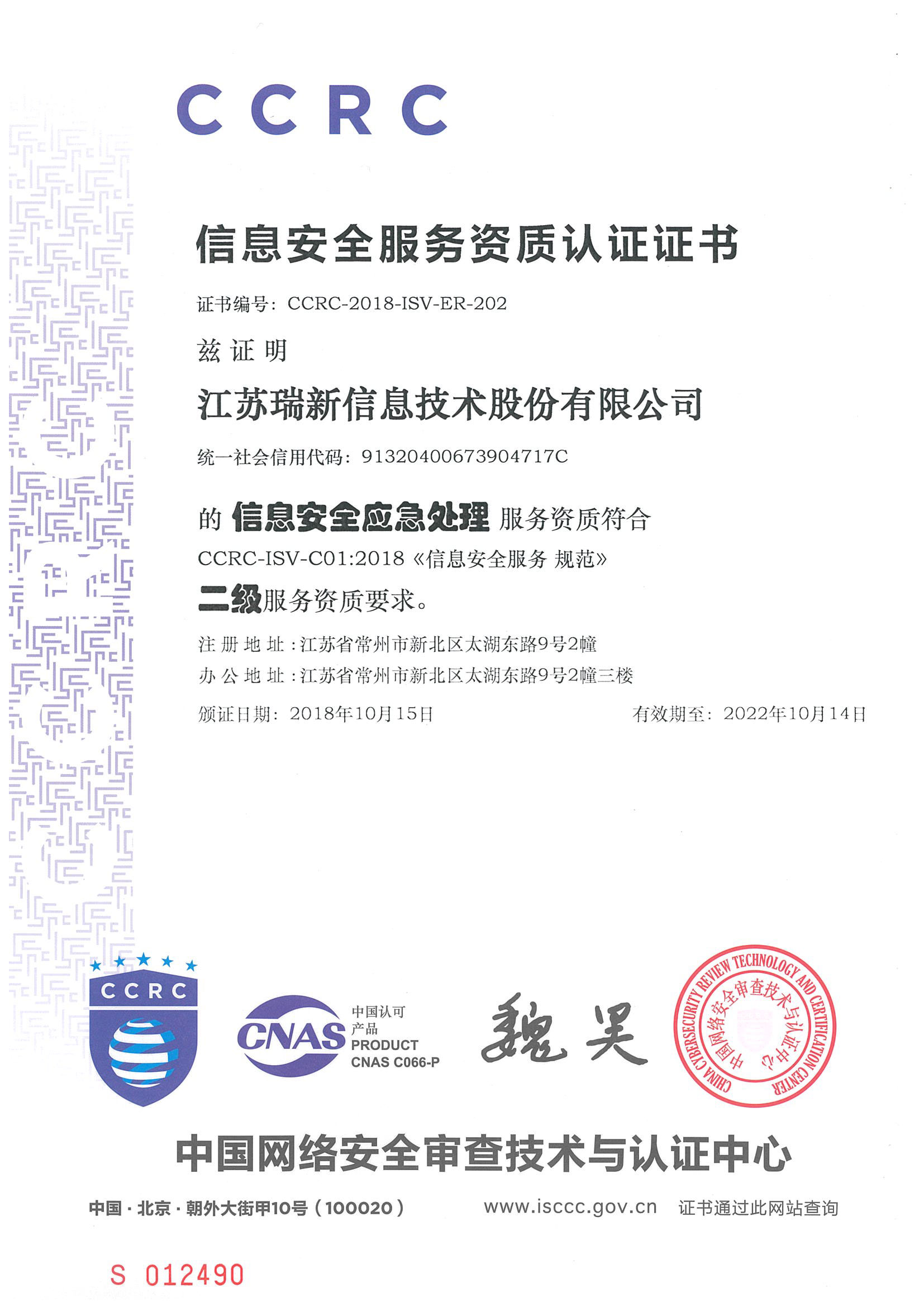 江蘇瑞新信息技術(shù)股份有限公司,專注于網(wǎng)絡(luò)安全領(lǐng)域研究,為用戶提供網(wǎng)絡(luò)安全服務(wù)、信創(chuàng)應(yīng)用軟件開發(fā)和系統(tǒng)集成等專業(yè)化服務(wù)。公司總部設(shè)立在江蘇省常州市創(chuàng)意產(chǎn)業(yè)園,自2008年成立以來,公司始終秉承“銳意創(chuàng)新,永不止步” 的信念,堅(jiān)持“立足常州、服務(wù)江蘇,走向全國”的戰(zhàn)略目標(biāo),先后成立南京分公司、徐州分公司、淮安分公司、連云港分公司和南通分公司。公司以“平臺(tái)+服務(wù)”的創(chuàng)新模式為用戶提供7*24小時(shí)安全監(jiān)測服務(wù),主要涵蓋預(yù)警監(jiān)測、風(fēng)險(xiǎn)評(píng)估、應(yīng)急響應(yīng)、培訓(xùn)服務(wù)、工業(yè)控制、數(shù)據(jù)評(píng)估、密碼安全等業(yè)務(wù)。客戶主要涉足黨政機(jī)關(guān)、公安、財(cái)稅、科教、質(zhì)監(jiān)、電力及大型企業(yè)用戶等。成立至今,公司榮獲全國“2020信創(chuàng)產(chǎn)業(yè)獨(dú)角獸100強(qiáng)”第50強(qiáng)、“江蘇省網(wǎng)絡(luò)安全重點(diǎn)企業(yè)”等獎(jiǎng)項(xiàng),并擔(dān)起社會(huì)責(zé)任,創(chuàng)建網(wǎng)絡(luò)安全“紅色衛(wèi)士”宣傳隊(duì),組織網(wǎng)絡(luò)安全宣傳公益活動(dòng),贏得了客戶和社會(huì)群眾的廣泛信賴。