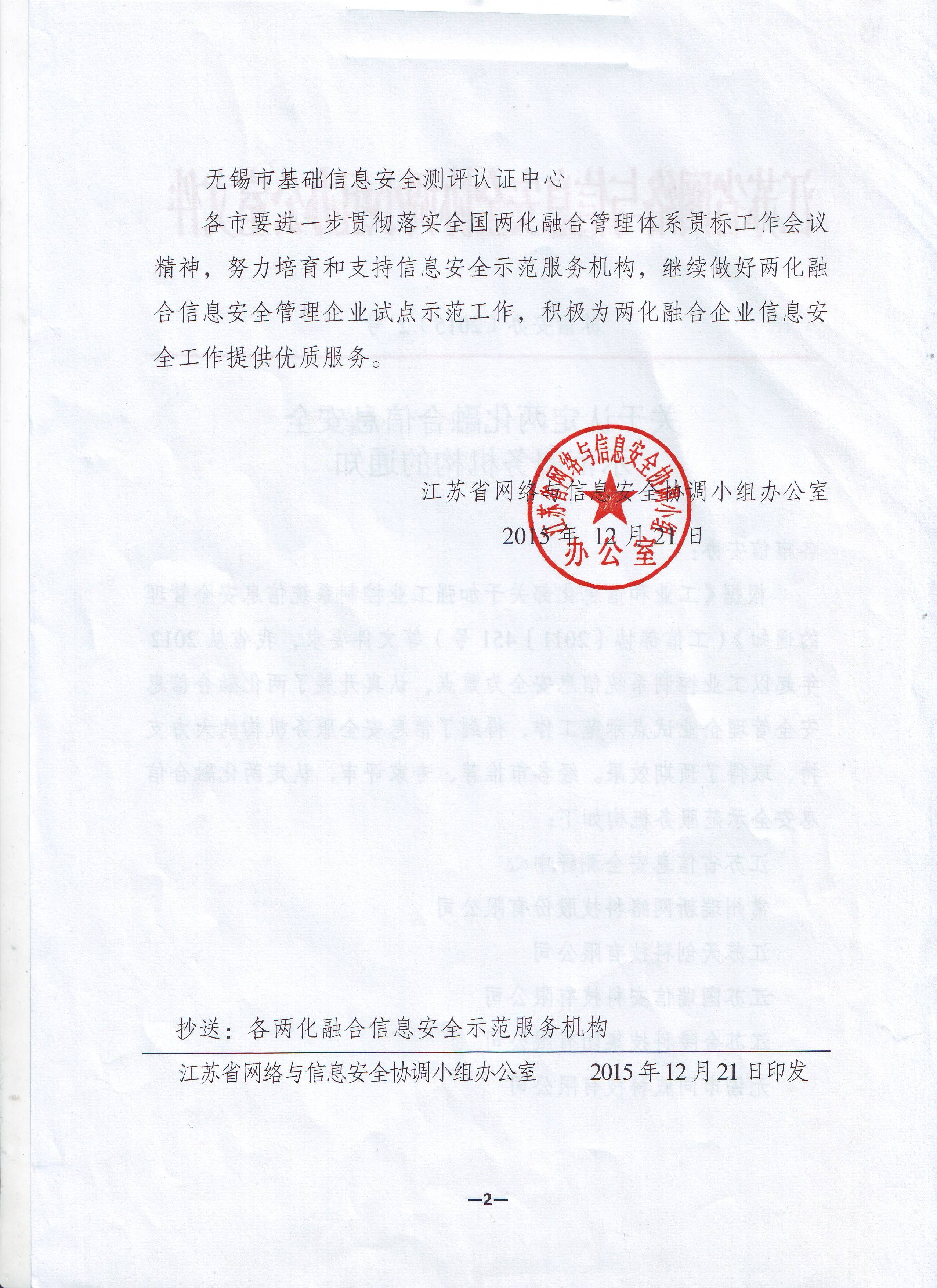 公司獲得了中國網(wǎng)絡(luò)安全審查技術(shù)與認(rèn)證中心頒發(fā)的《信息安全應(yīng)急處理》及《信息安全風(fēng)險(xiǎn)評(píng)估》二級(jí)證書;國家信息安全測評(píng)中心頒發(fā)的《信息安全服務(wù)資質(zhì)》二級(jí)證書;江蘇省軟件行業(yè)協(xié)會(huì)頒發(fā)的《軟件企業(yè)》證書;通過了CMMI3軟件成熟度開發(fā)認(rèn)證;通過了ISO9001質(zhì)量管理體系認(rèn)證證書及27001信息安全管理體系認(rèn)證證書;是江蘇省的高新技術(shù)企業(yè)、兩化融合示范試點(diǎn)企業(yè)、信息安全應(yīng)急響應(yīng)支撐單位;是常州市十佳軟件企業(yè)。