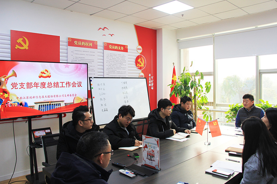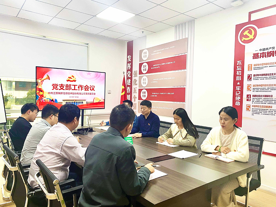 江蘇瑞新黨支部成立于2014年12月,隸屬于常州市互聯網行業黨委,現有在冊黨員27名(其中正式黨員25名,預備黨員2名),入黨積極分子2名。其中黨支部書記1名,組織委員1名,紀檢委員1名,宣傳委員1名,保密委員1名。黨支部以“紅心向黨、E心護網”為口號,以建設“網絡安全紅色衛士”黨建品牌為抓手,不斷加強支部的思想建設、組織建設、作風建設和制度建設,凝聚推動企業高質量發展的強大“紅色動力”。